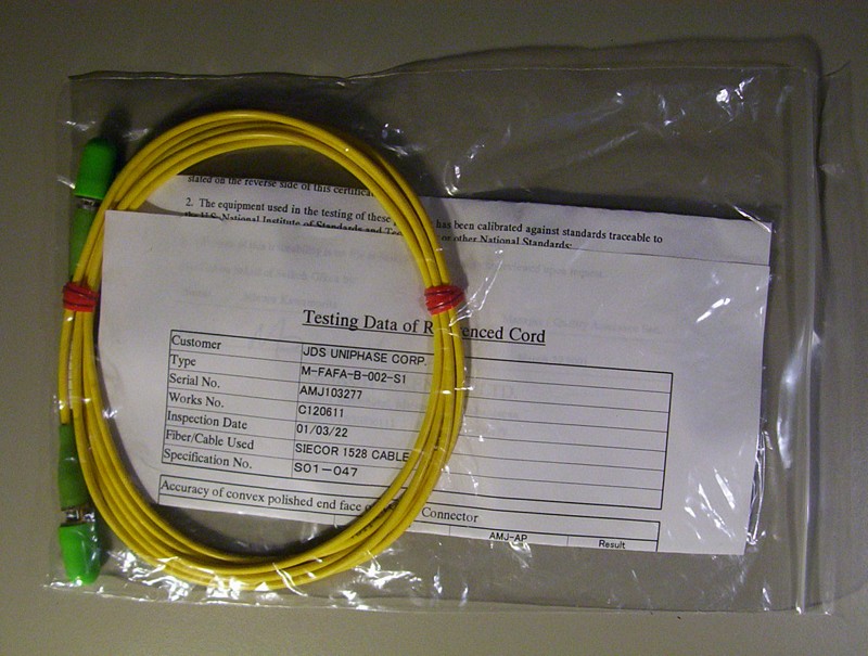 FC/APC-FC/APC 2-meter simplex SMF Master jumper as reference cord for measurement, very low loss. JDS P/N: M-FAFA-B-002-S1