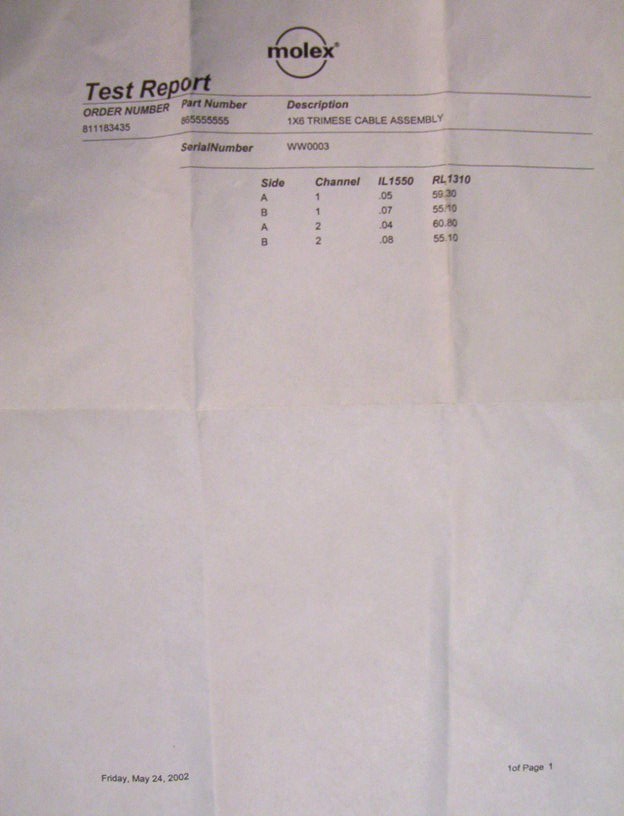2 meter, duplex 3mm SMF cable, with IL, RL test data on label