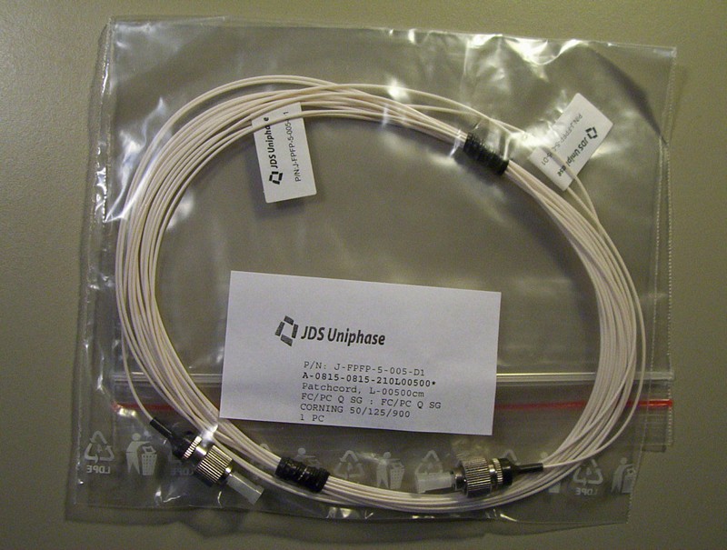 900um-buffered simplex jumper, 5-meter. 50/125/900um fiber (fiber core : 50um). You can also cut the jumper to make two fiber pigtails.