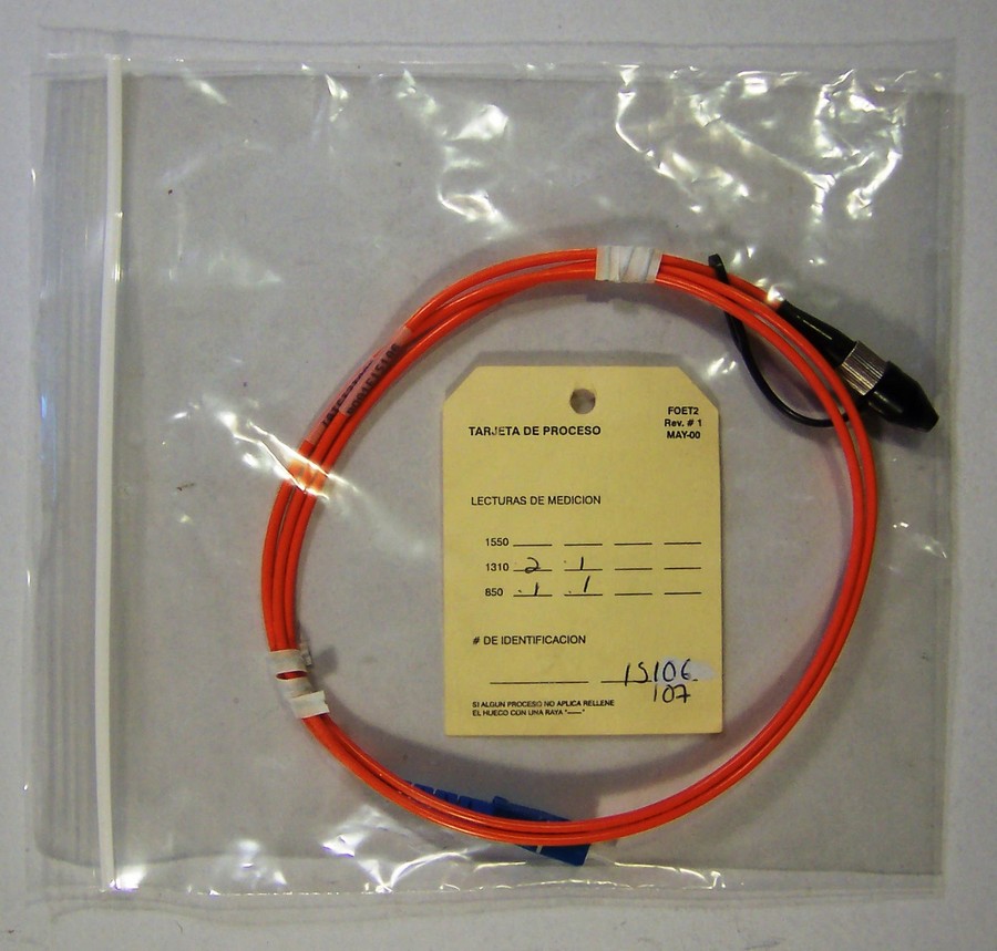 1 meter, simplex Siecor 3mm cable(cable datecode 05/00). 50/125um MM fiber. With high-quality connectors made for JDS. Original vendor : US Fiber Optics.