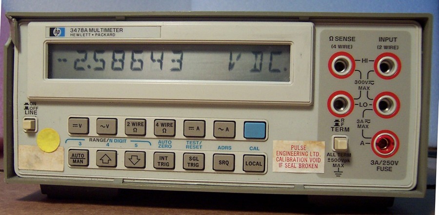 The HP 3478A is a low cost, full function, reliable DMM for system measurements. Selectable 3'/2 to 5 1/2 digit resolution and 5 autoranging functions offer flexibility in automated testing. The HP 3478A measures dcV, true rms acV, 2- and 4-wire resistance, and dc and ac current. Simple, fast electronic calibration eliminates all adjustments to provide a lower cost of ownership.