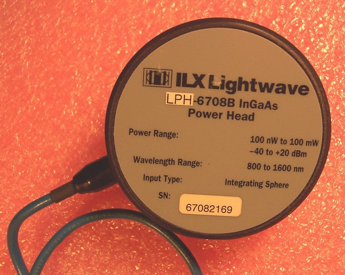 ILX LPH-6708B InGaAa power head integrating sphere, 800 to 1600 nm, -40 to +20dBm. With SC optical adapter. 'Sell As Is'. We can return, but two-way shipping cost is not refundable.