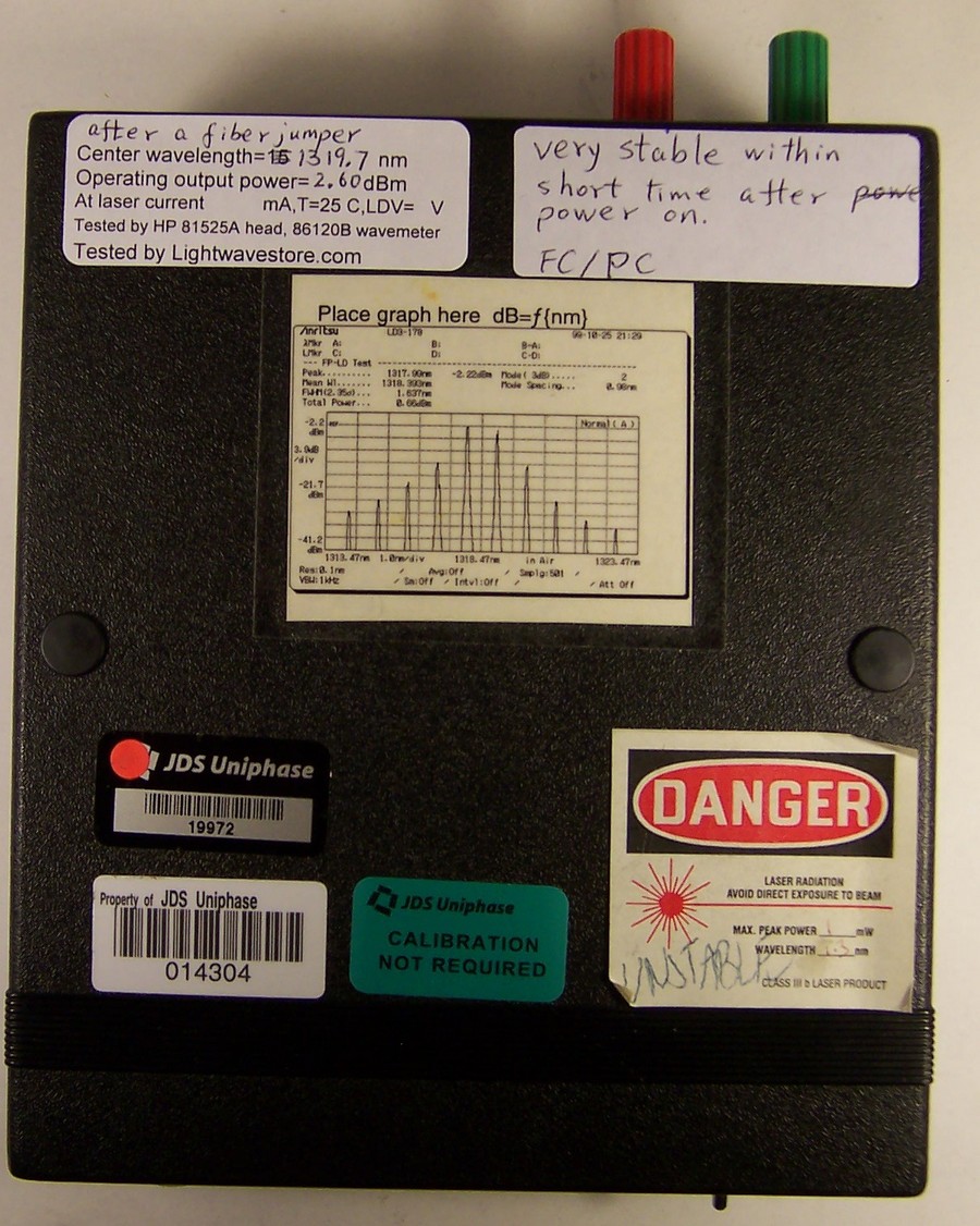 JDS 1319.7nm laser source. About 2.6dBm. Assembled by JDS.