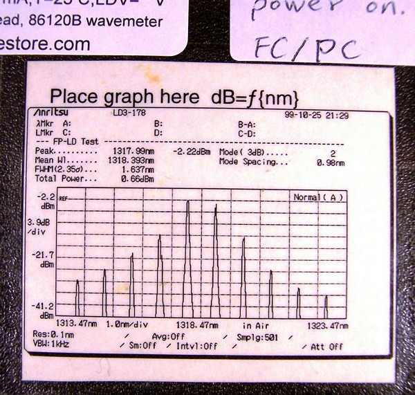 We made approximate power test. Our test data is  about 2.6dBm, as shown on the label of photo. The OSA spectrum was tested by JDS.