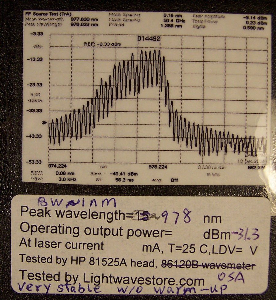 JDS 978nm laser source. About -31dBm. Assembled by JDS.