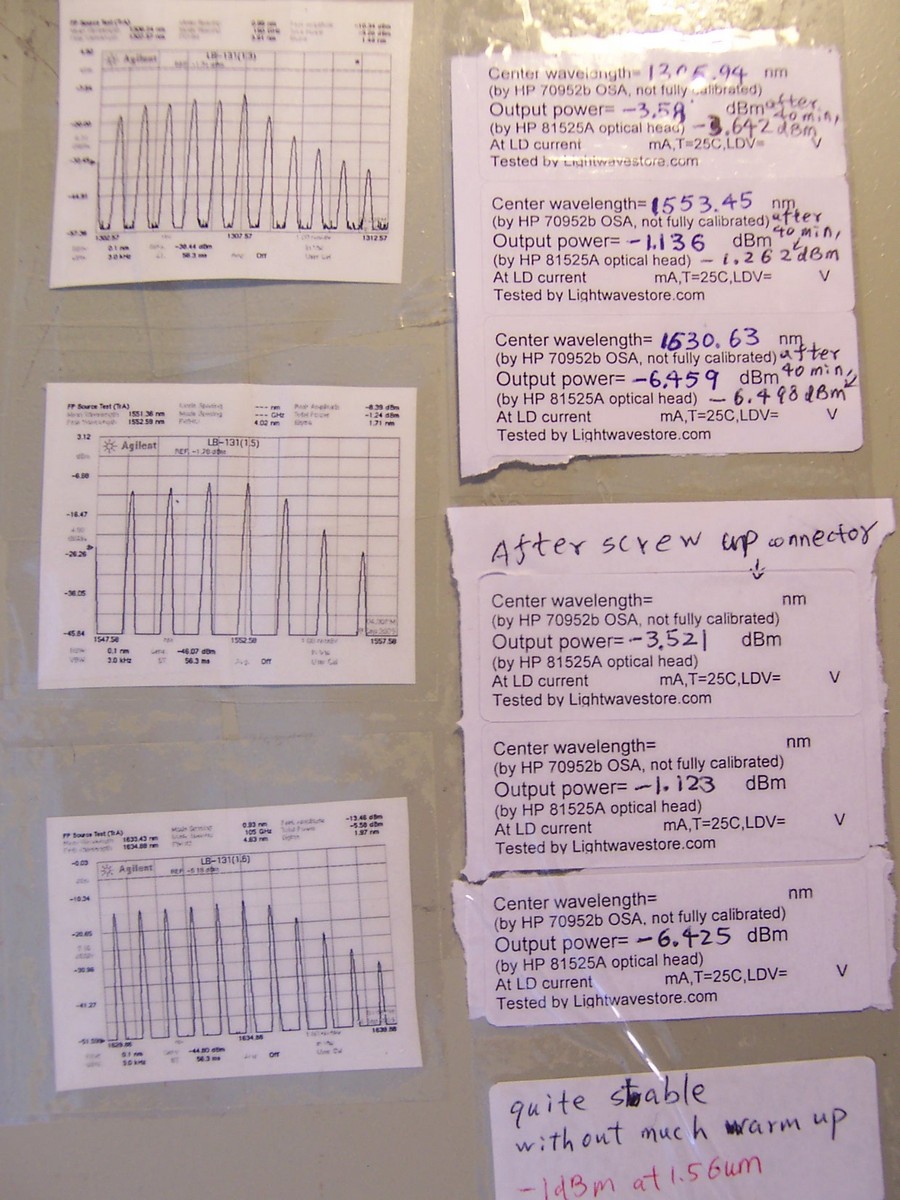 Original tested optical spectrum result by JDS was labeled on 3rd photo below.