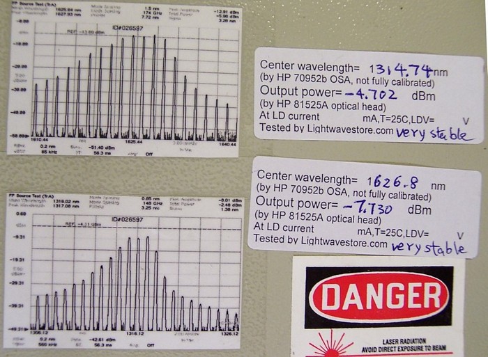 JDS benchtop stabilized 1315.26m/1624.9nm laser source, FC/PC adapter, FP laser with multimode lasing.