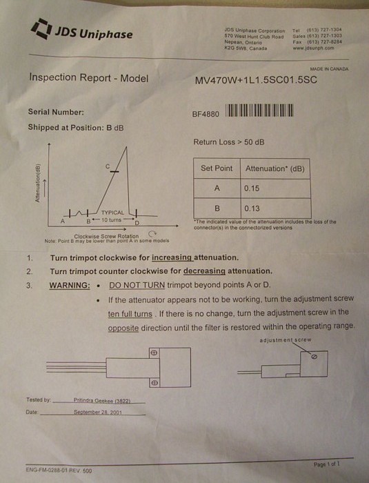JDS VOA,wavelength-flat, SC/UPC, optimized at 1.55um. Model:MV470W.