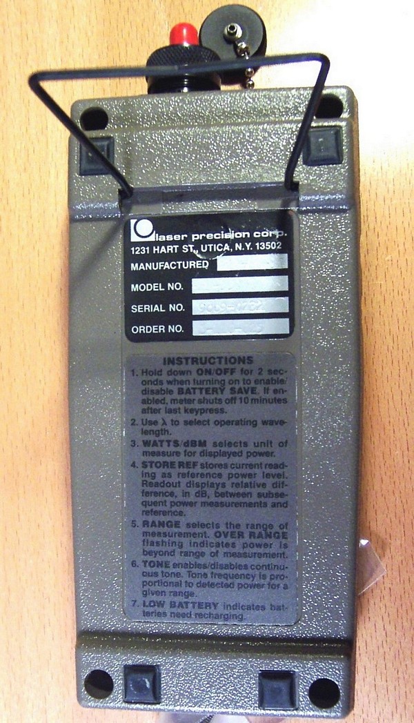 Features: Laser Precision Corp. Fiber Optic Power Meter designed to help troubleshoot fiber optic connections.