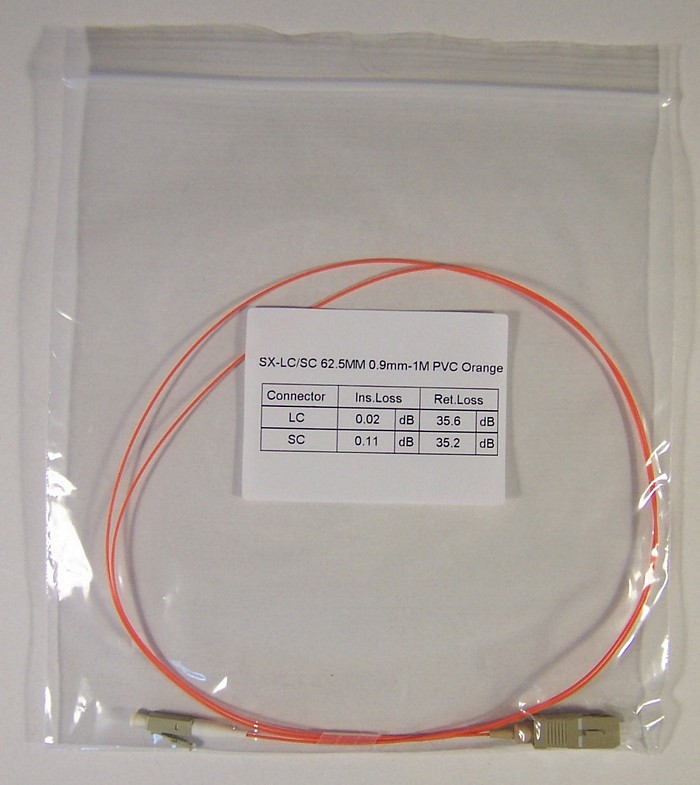 LC/PC-SC/PC 1-meter 62.5um MMF jumper, with 900um-buffered fiber. P/N: SX-LC/SC 62.5MM 0.9mm - 1m PVC Orange