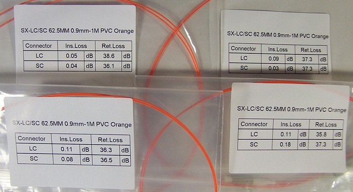 new in original product bag, with actual manufacture test data. New released products, we ordered them from factory directly. We verified that insertion loss meets specification on some samples of similar fiber jumpers.