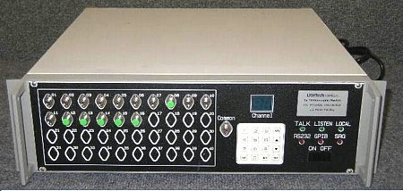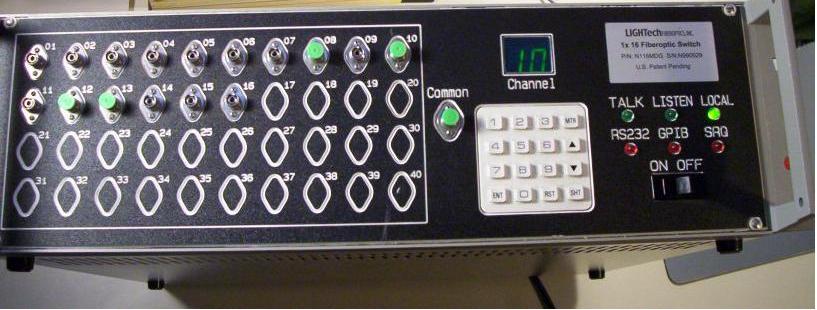 16 channels. FC/APC SM fiber interface. It cannot pass light. The channel number can be changed by pressing keypad in front panel. We do not know the GPIB command to change channel. Model number from GPIB idn query: LT9600 V.100.