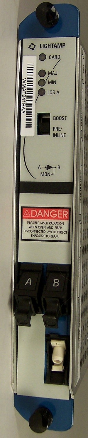 Metro-Access DWDM Erbium Doped Fiber Amplifer Unit. For both boost and pre/inline amplifier. JDSU P/N:  LAP-MCH00XR00A.  It includes  18dBm 2-stage gain-flat EDFA module with mid-stage accesss, JDSU P/N: OAA-18F-12511C.