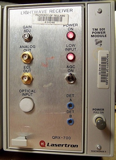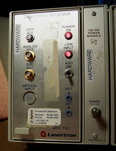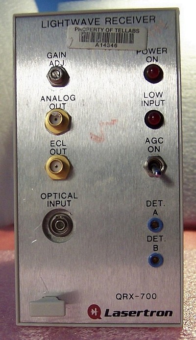 Optical receive equipment with Lasertron QRX-700 Lightwave Receiver plug-in module. 1300nm and 1550nm. It includes 250MHz optical receiver module.