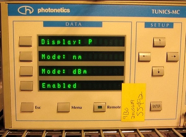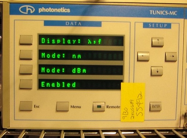 Photonetics TUNICS-MC Chassis Model 3647RA00 mainframe with two 3647HE1550-P6RL tunable laser modules. >6dBm laser tunable over 1500 - 1580 nm. FC/APC SMF optical interface.  1pm high resolution.