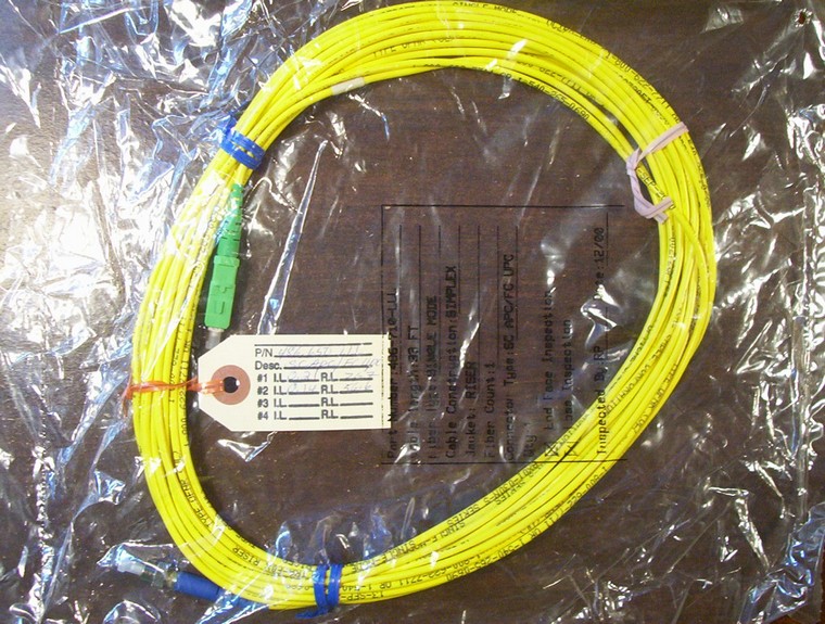 33-feet Siecor simplex 3mm cable, with IL, RL test data on label. RL sample: 56.6dB