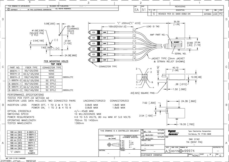 TYCO AMP dual fiber switch, 750-1450nm, multimode fiber