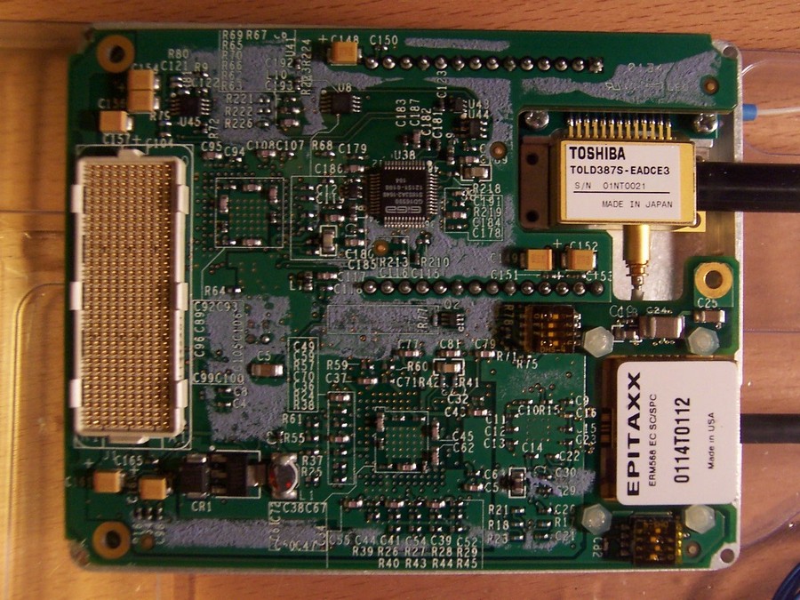 Unipak10 10Gb 1.55um C-band transceiver. With EML source (Toshiba model: TOLD387S-EADCE3), and 10Gb pin-preamp receiver (Epitaxx model: ERM568 EC). Cenix Model: C1301B000S. Sell 'As Is'